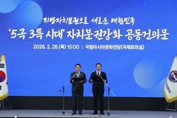 대한민국시장·군수·구청장협의회는 2월 26일 국립아시아문화전당에서 민선8기 4차년도 제3차 공동회장단회의를 열고 『5극3특 시대 자치분권 강화 공동건의문』을 발표했다. 협의회는 수도권 집중을 극복하고 지역 주도의 균형성장을 실현하기 위해 기초지방정부의 권한과 재정 확충이 필수적이라고 강조했다. “권한·재정 확대가 균형성장 성패 좌우”조재구 대표회장은 건의문을 통해 “5극3특 균형성장 정책의 성패는 기초지방정부의 권한과 재정 확충에 달려 있다”고 밝혔다. 특히 전남·광주 행정통합이 자치분권의 새로운 이정표가 되어 지역 성장과 경쟁력 강화의 모범 모델로 자리 잡아야 한다고 강조했다. 협의회는 ▲권한 이양을 통한 기초지방정부 분권 강화 ▲지방교부세 확충과 보통교부세 자치구 직접 교부 ▲국가균형성장 정책 수립 시 기초지방정부 협의 의무화 등을 정부와 국회에 건의했다. 중앙지방협력회의 참여 확대…대표성 강화협의회는 민선8기 후반기 주요 성과로 중앙지방협력회의에서 기초지방정부 참여가 기존 대표회장 1명에서 시장·군수·구청장 각 1명씩 총 3명으로 확대될 예정이라고 밝혔다. 이는 지역 특성에 따른 다양한 의견을 국가 정책에 반영할 수 있는 제도적 통로가 마련된 것으로,
