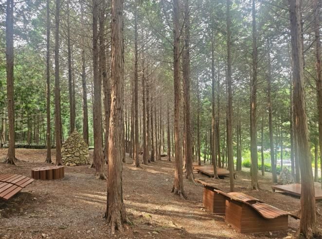 약 416헥타르에 달하는 넓은 숲에는 편백나무가 빼곡히 들어서 있어 풍부한 피톤치드를 자랑한다. 완만한 경사의 산책로와 명상 공간이 잘 조성돼 있어 남녀노소 누구나 편하게 걸을 수 있다.