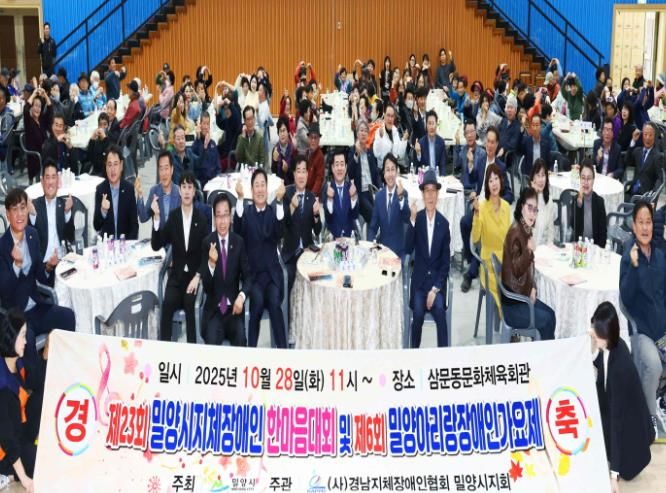 경남 밀양시는 28일 밀양문화체육회관에서 (사)경남지체장애인협회 밀양시지회 주관으로 **‘제23회 지체장애인 한마음 단합대회 및 제6회 밀양아리랑 장애인가요제’**를 개최했다고 밝혔다.