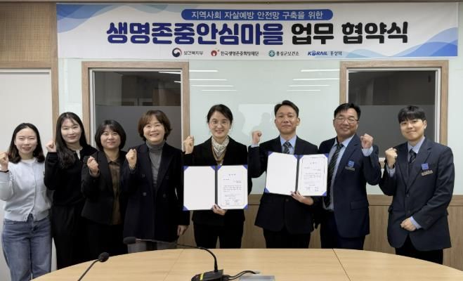 홍성군보건소가 코레일 대전충남본부 홍성관리역과 함께 생명존중안심마을 조성을 위한 업무협약을 체결했다. 협약식은 지난 25일 진행됐으며, 지역사회 기반의 자살예방 안전망을 강화하기 위한 공동 협력에 뜻을 모았다.