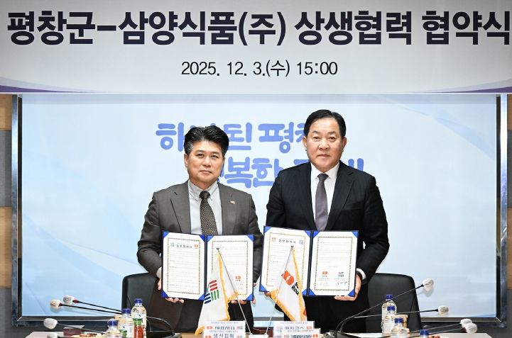 심재국 평창군수는 “삼양식품과의 협약은 지방 소멸 위기에 대응하는 새로운 민관 협력 모델”이라며 “지역경제 활성화와 주민 삶의 질 향상, 나아가 지속 가능한 지역발전의 발판이 될 것”이라고 밝혔다.