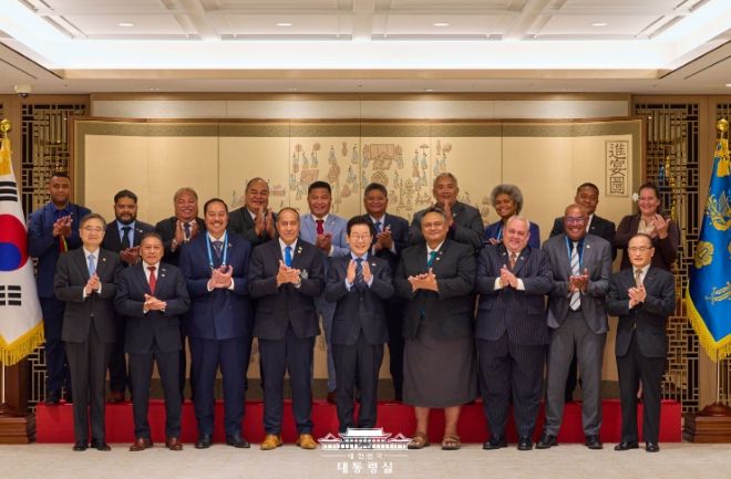 이 대통령은 “한국과 태평양도서국이 지난 반세기 동안 쌓아온 신뢰와 협력의 토대 위에서 앞으로도 어업·광물·에너지 등 실질 협력 분야를 강화하길 바란다”고 말했다.