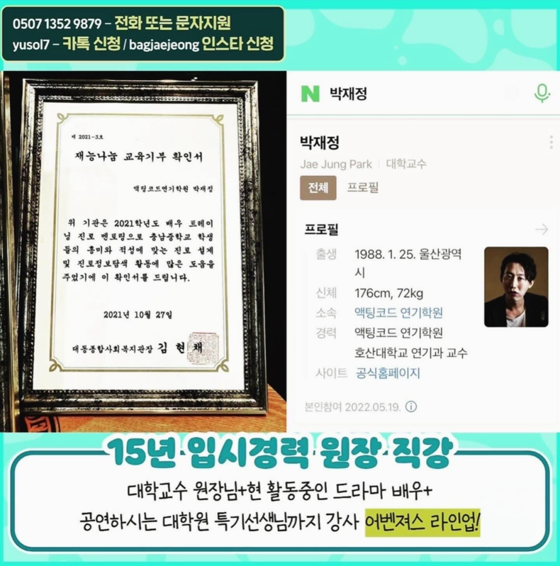 대전 액팅코드연기학원 운영하는 박재정 대표를 만나 인터뷰 진행 했습니다.