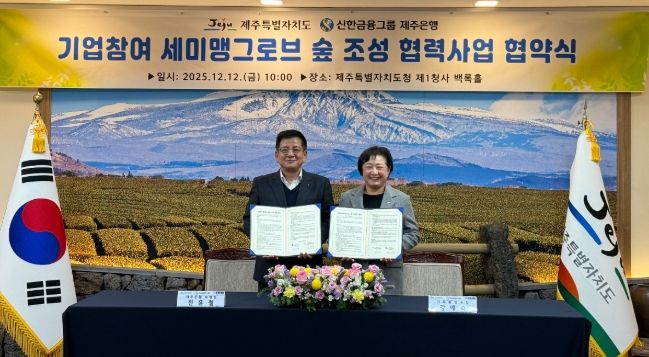 제주도는 12일 제주은행과 **‘세미맹그로브 숲 조성 업무협약’**을 체결했다고 밝혔다. 이번 협약은 제주 고유 식생을 기반으로 한 탄소흡수원 확충과 기업 ESG(환경·사회·지배구조) 경영의 실천을 동시에 추진하기 위한 것이다.