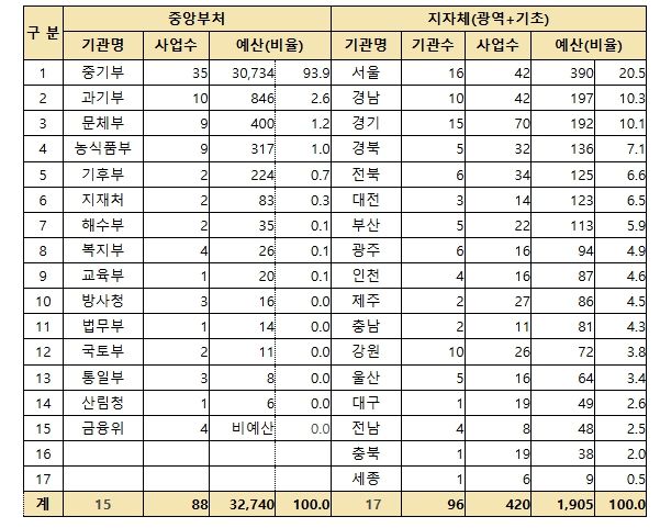 과기부, 문화체육관광부, 농림축산식품부가 뒤를 이었다.
