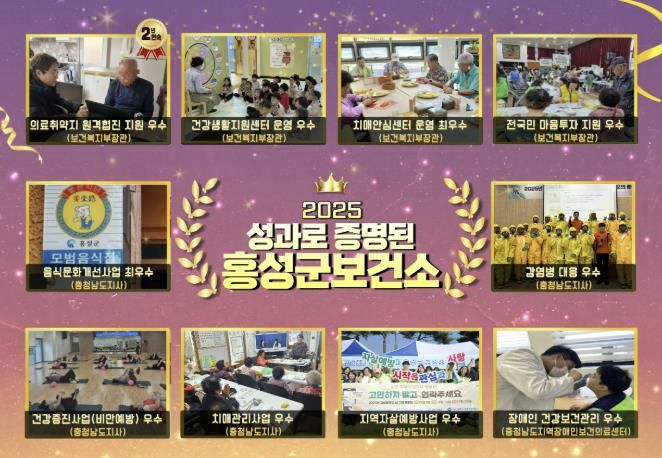 홍성군보건소는 2025년 보건복지부와 충청남도가 실시한 총 11개 분야 평가에서 우수기관으로 선정됐다.