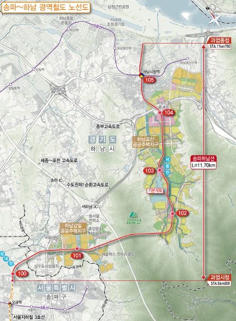 송파하남선 광역철도는 서울지하철 3호선 오금역에서 하남시청역까지 총 연장 11.7km를 연결하는 노선으로, 서울 도심과 하남 감일지구·교산 신도시를 경유한다. 사업은 2027년 착공, 2032년 개통을 목표로 추진 중이다.