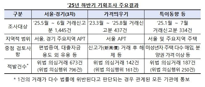 국토교통부가 2025년 하반기 부동산 이상거래 기획조사 결과를 발표했다.