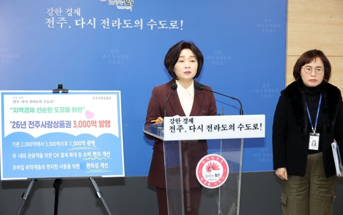 임숙희 전주시 경제산업국장은 “2025년 한 해는 침체된 민생경제를 회복하기 위해 다양한 정책을 추진했다”며 “2026년에는 전주사랑상품권 증액과 특례보증 확대를 통해 지역경제 회복의 마중물 역할을 하겠다”고 밝혔다.