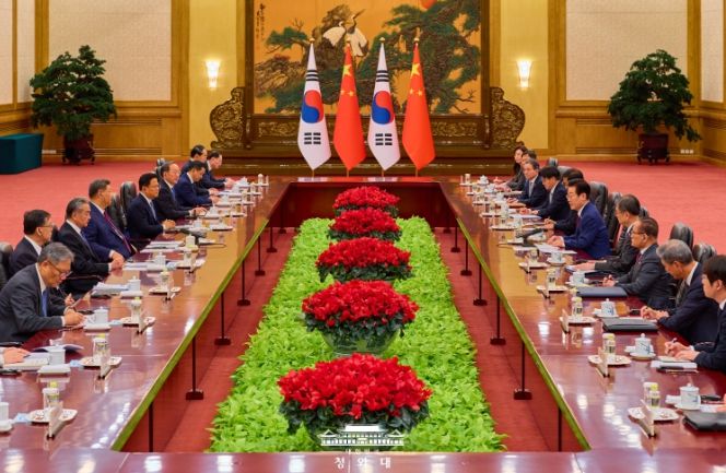 국빈 방문 일정으로 중국을 찾은 이재명 대통령이 5일(현지시간) 오후 베이징 인민대회당에서 시진핑 중국 국가주석과 정상회담을 가졌다. 양국 정상은 약 90분간 회담을 진행하며 한중 관계 발전 방향과 주요 현안에 대해 폭넓게 의견을 교환했다.