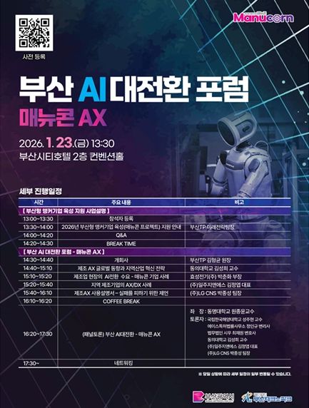 이어지는 ‘부산 AI대전환 포럼–매뉴콘 AX’에서는 부산 제조업의 AI 전환 전략과 실무 적용 사례가 발표된다.