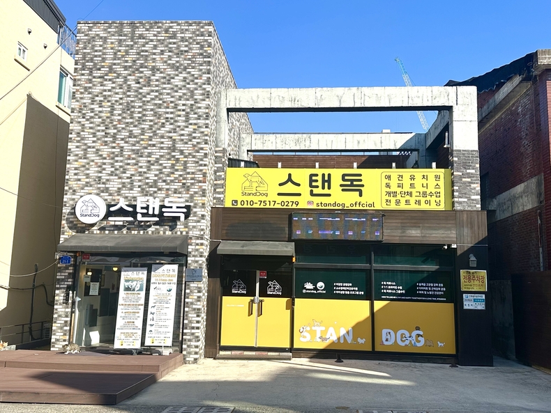 스탠독은 독피트니스 1:1 수업을 중심으로 행동 수정 프로그램과 반려견 유치원을 함께 운영한다. 유치원은 공간 특성상 15kg 이하 소형견만 받지만, 피트니스와 교육 프로그램은 견종 제한 없이 진행된다.