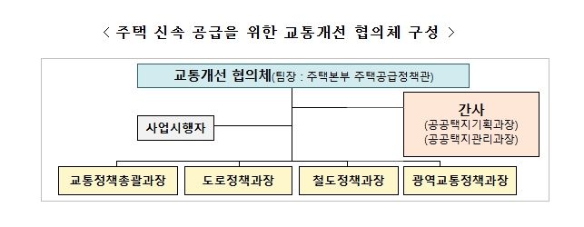 협의체는 주택공급추진본부 주택공급정책관을 팀장으로, 교통정책총괄과장·도로정책과장·철도정책과장·광역교통정책과장 등으로 구성된다.
