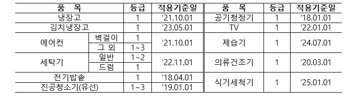지원 품목은 냉장고, 세탁기, 에어컨 등 총 11개 가전으로, 신청자는 에너지효율등급 라벨 사진과 제조번호 명판, 거래내역서, 구매 증빙 등을 준비해 전용 누리집을 통해 신청할 수 있다. 세부 사항은 고효율 가전 고객센터를 통해 안내받을 수 있다.