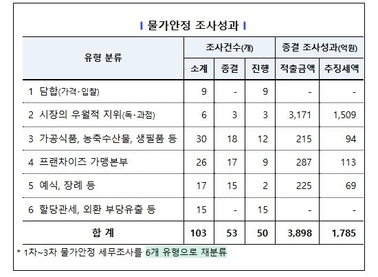 국세청은 2025년 9월부터 2026년 1월까지 총 3차례에 걸쳐 담합·독과점, 가공식품·생필품 제조, 농축수산물 유통 등 생활물가 밀접 업종 103개 업체를 대상으로 세무조사를 실시했다.