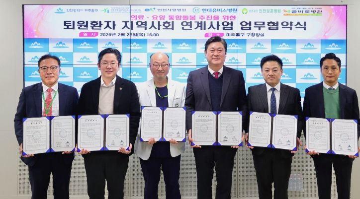 인천 미추홀구는 지난 26일 지역 내 5개 의료기관과 ‘퇴원 환자 지역사회 연계사업’ 추진을 위한 업무협약을 체결했다.