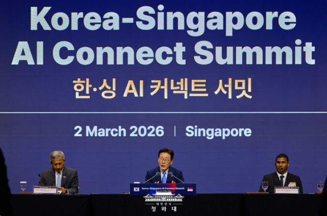 이 대통령은 2일(현지시간) 싱가포르에서 열린 ‘한·싱 AI 커넥트 서밋’에 참석해 “대한민국과 싱가포르가 동반 성장의 기반을 마련해 세계 AI 산업 흐름을 이끄는 ‘AI 대항해 시대’를 함께 열어가겠다”고 밝혔다.