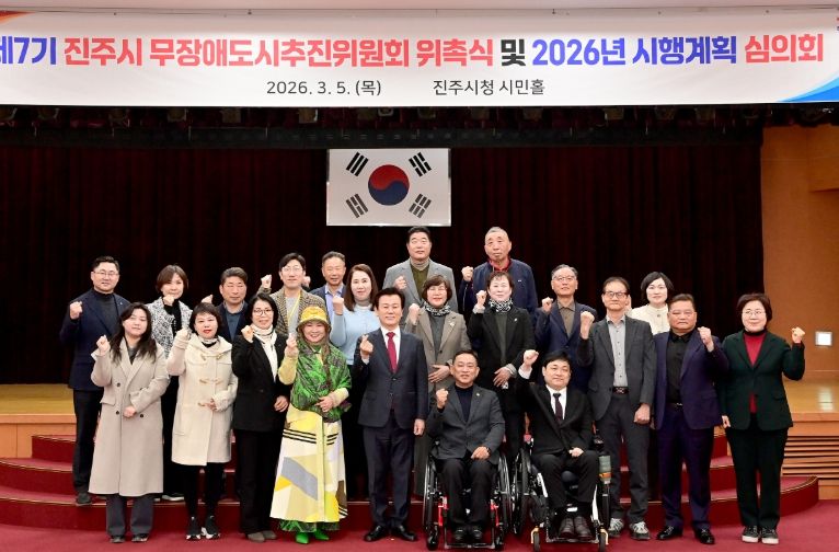 비즈데일리 이성화 기자 | 진주시는 5일 시청 2층 시민홀에서 제7기 무장애 도시 추진위원회 위촉식을 개최하고, ‘제3기(2025~2029년) 무장애 도시 기본계획’에 따른 ‘2026년 연차별 계획’을 심의·확정했다.