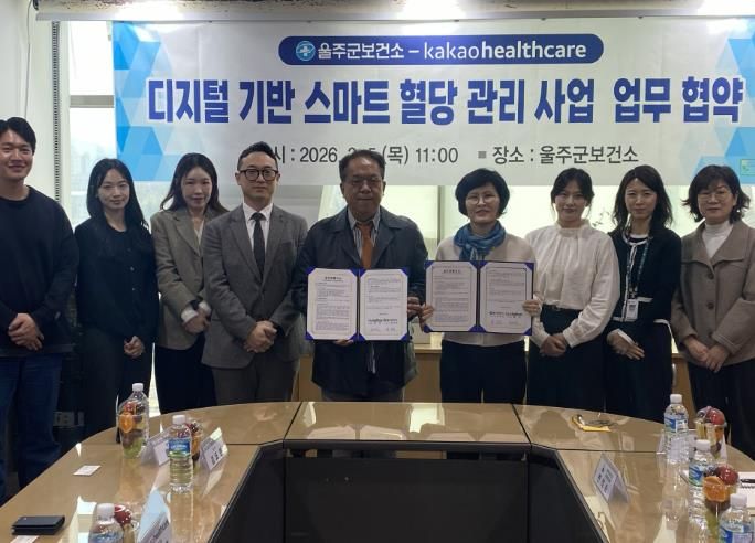 비즈데일리 이정아 기자 | 울주군보건소가 카카오헬스케어와 5일 당뇨 전단계 및 당뇨병 대상자의 혈당 관리 강화를 위한 ‘건강케어 24시간 혈당주치의’ 업무협약(MOU)을 체결했다.