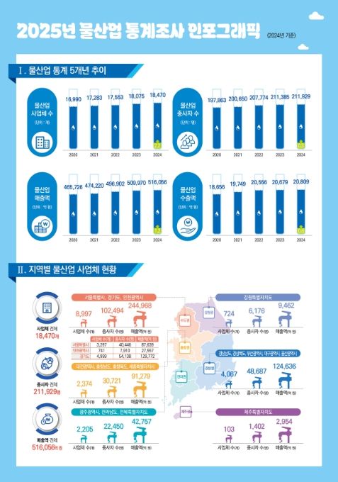 이번 조사는 물산업 관련 4,500개 사업체를 대상으로 진행됐으며, 사업체 현황과 매출, 수출, 고용 등 전반적인 산업 구조를 분석했다.