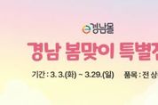 경상남도와 (재)경상남도투자경제진흥원이 운영하는 온라인 쇼핑몰 ‘e경남몰’이 3월 3일부터 예산 소진 시까지 ‘2026년 봄맞이 할인 기획전’을 진행한다. 이번 기획전은 제철 농·수산물과 지역 우수 먹거리를 합리적인 가격에 제공하기 위해 마련됐다. 신선 채소와 과일, 가공식품 등 e경남몰 전 상품을 대상으로 20% 할인(최대 1만 원) 혜택이 제공된다. 또한 입점 업체별 자체 할인 행사도 함께 진행돼 다양한 지역 특산물을 보다 저렴한 가격에 구매할 수 있다. 특히 e경남몰에서는 시군별로 발행 중인 모바일 지역사랑상품권을 사용할 수 있다. 10~12% 할인된 가격으로 구매한 지역사랑상품권으로 결제할 경우 소비자는 추가적인 가격 절감 효과를 얻을 수 있다. 경상남도는 이번 할인 행사를 통해 지역 농수산물 소비를 촉진하고 온라인 판로 확대에도 도움이 될 것으로 기대하고 있다. 황영아 경남도 소상공인정책과장은 “이번 봄맞이 기획전을 통해 도민들이 경남의 신선한 제철 농·수산물을 즐기며 풍성한 봄 식탁을 꾸리길 바란다”며 “e경남몰 이용도 더욱 활성화되길 기대한다”고 말했다. 지역 농수산물의 온라인 판매는 판로 확대와 소비 촉진을 동시에 이끌 수 있는 중요한 유통 방