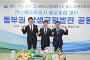 광양시가 여수·순천시와 손잡고 전남·광주 행정통합에 선제적으로 대응하며 전남 동부권의 지속 가능한 발전 전략을 본격화하고 있다. 광양시에 따르면 13일 국립순천대학교에서 열린 제41차 여수·순천·광양시 행정협의회 정기회의에서 동부권 상생균형발전과 미래 산업 전환을 위한 공동건의 3건을 공식 의결했다. 이번 회의는 전남·광주 행정통합이라는 중대한 행정환경 변화 속에서 동부권이 소외되거나 기능이 축소되는 것이 아니라, 대한민국 남부권의 핵심 성장축이자 미래 산업 전환의 전진기지로 자리매김해야 한다는 공감대 속에 진행됐다. 특히 철강·석유화학·항만·이차전지 등 국가 기간산업이 집적된 동부권의 전략적 역할을 강화하기 위해, 통합 특별법에 실질적인 법적·제도적 지원 근거를 명확히 반영해야 한다는 데 3개 시가 뜻을 모았다. 이날 의결된 주요 건의 사항은 ▲‘전남 동부권 상생균형발전과 산업대전환’을 위한 행·재정 지원 근거의 특별법 반영 ▲전남광주통합특별시 출범 시 3개 청사의 기능 분산 및 균형발전 체계 구축 ▲KTX-SRT 통합에 따른 전라선 좌석 공급 확대 등이다. 광양시 관계자는 “이번 공동건의는 행정통합을 동부권 산업 경쟁력 강화와 국가 균형발전의 기회로 전환