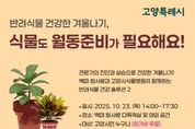비즈데일리 이재순 기자 | 고양특례시는 반려식물의 건강한 겨울나기를 위한 맞춤 해법을 제공하는 ‘그린케어, 겨울 대비 반려식물 돌보기 행사’를 오는 10월 23일 오후 2시부터 5시 30분까지 백마 화사랑에서 개최한다고 밝혔다. 먼저 백마 화사랑 야외 공간에서는 고양시식물병원 전문가가 상주해 시민이 직접 가져온 반려식물에 대해 1:1 현장 진단을 제공하고, 병해충, 과습 등 식물의 상태에 따라 분갈이, 영양제 처방 및 맞춤형 월동 관리법을 안내한다. 별도 신청 없이 당일 현장 접수로 참여 가능하다. 실내에서는 ‘반려식물 동절기 핵심 관리법’을 주제로 체험형 특강이 진행된다. 겨울철 생육 관리 요령, 휴면기 대비 가지치기 및 분갈이 실습 등 내년 봄의 성장을 위한 전문적인 지식을 습득할 수 있다. 특강은 백마 화사랑 누리집에서 선착순 12명까지 신청할 수 있다. 시 관계자는 "겨울은 식물이 가장 취약해지는 시기인 만큼, 이번 행사를 통해 전문가의 과학적인 진단과 맞춤형 솔루션으로 반려식물과 더욱 건강하고 풍요롭게 겨울을 나시길 바란다”고 전했다. 행사에 대한 자세한 내용과 특강 신청은 백마 화사랑 누