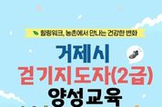 거제시보건소가 시민 주도형 건강 문화 확산에 나선다. 보건소는 **‘농촌형 걷기지도자(2급) 양성교육’**을 운영해 시민의 건강한 걷기 습관을 장려하고, 지역사회 건강 리더를 양성할 계획이라고 밝혔다. 이번 교육은 11월 7일부터 8일까지 이틀간 오전 9시부터 오후 6시까지 진행되며, 걷기 지도자 및 건강 리더 활동에 관심 있는 시민 30명을 대상으로 한다. 교육은 장목면사무소 2층 회의실과 건강위원회 길에서 이론과 실습을 병행해 운영된다.이론 과정에서는 ▲걷기운동의 필요성 ▲올바른 자세 ▲건강 걷기의 중요성 등을 배우며, 실습 과정에서는 ▲보행 측정 및 분석 ▲노르딕 워킹 ▲걸음걸이 교정 등 실전형 프로그램이 진행된다. 참가자는 편안한 복장과 신발, 텀블러를 지참하면 되며, 모집은 **장목면민 사전 모집(10월 15일~24일)**과 **일반 모집(10월 27일~11월 5일)**으로 구분된다. 신청은 장목면사무소 방문 또는 온라인을 통해 가능하다. 강미정 거제시보건소 건강증진과장은 “걷기 지도자 양성 교육은 시민이 스스로 건강을 관리하고, 지역에 건강한 생활 문화를 전파할 수 있는 뜻깊은 과정”이라며 “많은 시민들이 함께 참여해 건강한 거제를 만들어 가길 바
