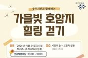 비즈데일리 이정아 기자 | 충주시는 걷기 좋은 가을을 맞아 오는 24일 시민의 숲과 호암지 일대에서 ‘가을빛 호암지 힐링 걷기’를 개최한다고 밝혔다. 이번 행사는 깊어가는 가을의 정취 속에서 시민들이 함께 걸으며 건강한 생활습관을 실천하고, 다양한 건강체험 프로그램을 통해 스스로 건강 상태를 확인할 수 있도록 마련됐다. 걷기 행사는 오후 4시 함지길(충주종합운동장 보조경기장 인근)에서 집결해 간단한 스트레칭 후 호암지 일부 구간을 걷고 오는 약 3km 코스로 진행된다. 코스 중간에는 체크포인트 이벤트와 버스킹 공연이 함께 마련돼 재미와 활력을 더하며 누구나 부담 없이 참여할 수 있는 프로그램으로 구성됐다. 본행사에 앞서 오후 1시부터는 ‘건강체험부스’가 운영된다. 이곳에서는 △혈압·혈당·체성분 검사 등 기본 건강 측정 △금연·절주·구강건강 등 건강생활실천 홍보 △치매 예방 캠페인 △풍선아트·양말목공예 등 다양한 참여형 프로그램이 마련돼 온 가족이 함께 즐길 수 있는 체험의 장이 될 전망이다. 특히 올해는‘보행측정장비’를 새롭게 도입해 참가자들의 보행 패턴과 균형 상태를 분석