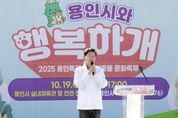 비즈데일리 장경선 기자 | 이상일 용인특례시장은 19일 처인구 마평동의 ‘SERI PAK with 용인’ 앞 천연잔디광장에서 열린 ‘2025 용인시와 행복하개’ 축제에 참석해 반려동물 가족과 함께 소통하는 시간을 가졌다. 이번 행사는 반려동물과 시민들이 함께 어울리며 공존할 수 있는 문화를 확산하고, 유기동물 입양을 장려하기 위해 마련됐다. 이날 행사장에는 가족 단위 시민과 반려인 등 5000여 명이 방문해 축제 분위기를 함께 즐겼다. 이상일 시장은 인사말에서 “시는 매년 반려동물과 함께하는 축제를 열며 반려문화 확산과 동물복지 향상을 위해 꾸준히 노력하고 있다”며 “지난해까지 시청 광장에서 열렸던 행사를 올해는 더 좋은 환경에서 시민과 반려동물들이 축제를 즐길 수 있도록 이곳 천연잔디광장으로 옮겨 개최했다”고 말했다. 이 시장은 “용인 시민 110만명 중 25만여 명이 15만 반려동물과 함께하고 있다”며 “앞으로도 반려동물 복지증진과 시민 인식개선을 위한 정책을 지속적으로 추진해 나가겠다. 화창한 가을 날씨 속에서 반려동물과 함께 즐거운 추억 많이 남기시길 바란다”고 했다. 이 시장