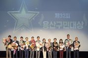 비즈데일리 장경선 기자 | 서울 용산구가 지난 17일 ‘제32회 용산구민의 날’을 맞아 용산아트홀 대극장 미르(녹사평대로 150)에서 기념식을 열고, 구민과 함께 화합과 소통의 시간을 가졌다. 이날 행사에는 박희영 용산구청장을 비롯해 권영세 국회의원, 김성철 용산구의회 의장, 시·구의원, 정영철 영동군수(자매도시) 등 내빈과 구민 대표 800여 명이 참석해 자리를 빛냈다. 기념식은 용산해방어린이집 중창단과 용산시니어합창단 중창단의 식전공연으로 시작해 ▲기념 영상 상영 ▲구민대상 시상식 ▲기념사 및 축사 ▲기념 퍼포먼스 순으로 진행됐다. 특히, 기념 영상은 구민과의 소통과 공감을 통해 변화한 용산의 모습들을 담아내 행사 의미를 더했다. 올해 ‘용산구민대상’은 ▲임성우·용문동 새마을금고(선행봉사상) ▲정재범(모범가족상) ▲전쟁기념사업회(문화예술상) ▲김도영(생활체육진흥상) ▲서울특별시 용산구상공회·이태원1동 새마을금고(지역발전상) ▲성심수도회 청년공간 바라(환경보호상) ▲강남준(교육발전상) ▲서울특별시 옥외광고협회 용산구지부(안전상) ▲이기수(특별상) 등 11명(단체 포함)이 수상했다. 상