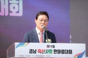 비즈데일리 장대성 기자 | 경상남도는 17일 고성군 스포츠타운에서 열린 ‘제11회 경남 축산사랑 한마음대회’에서 지속가능하고 스마트한 경남 축산 실현을 강조했다. 이번 행사는 경상남도와 고성군이 주최하고, 경남축산단체협의회와 경남농협이 주관했으며, 박완수 도지사, 이상근 고성군수, 최학범 경남도의회 의장, 류길년 농협경남지역본부장, 지역 농축협장, 축종별 단체 축산농가(한우·한돈·낙농·양봉·산란계·오리) 및 지역주민 등 1,000여 명이 참석해 성황을 이뤘다. 이번 대회는 ‘미래를 여는 힘! 건강한 축산, 행복한 경남!’을 주제로 열렸으며, 지난해 가축전염병 확산 방지를 위해 중단된 이후 2년 만에 재개된 것으로, 도내 축산인들이 한자리에 모여 소통과 화합을 다지고 경남 축산물의 우수성을 널리 알리며 소비 촉진 분위기를 확산하기 위해 마련됐다. 박완수 도지사는 이날 현장에서 축산 발전 유공자에게 도지사 표창을 수여하며 공로를 치하했고, 이어 축종별 단체 부스와 우수 축산물 시식회‧홍보관을 둘러보며 축산인들과 소통하고 현장의 의견을 청취했다. 또한 박 지사는 인사말을 통해 “올해 여러 재난과 어려움