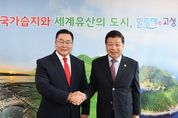 비즈데일리 장대성 기자 | 고성군은 10월 16일 군수실에서 이상근 군수와 차강 웁궁 자담바 주부산 몽골 영사가 만나 제6회 고성독수리 생태축제 및 한·몽 교류 협력 방안을 논의했다고 밝혔다. 이번 만남은 독수리 보호와 생태관광 네트워크 구축, 한국 거주 몽골 교민의 고성군 방문 추진 등 실무 협의의 일환으로 마련됐다. 이상근 군수는 차강 웁궁 자담바 영사에게 오는 12월 6일부터 7일까지 열리는 ‘제6회 고성독수리 생태축제’에 참석해 줄 것을 요청했으며, 공룡 발자국 화석으로 유명한 고성군과 진품 공룡 화석을 다수 보유한 몽골 간의 과학·교육 교류 방안도 함께 논의했다. 차강 웁궁 자담바 영사는 이날 2025년 경남 고성 공룡세계엑스포 행사장을 방문해 고성군의 문화·관광 인프라를 둘러보고, 향후 양국 간의 문화 교류 확대 가능성에 대한 의견을 나눴다. 이상근 고성군수는 “고성과 몽골은 독수리와 공룡이라는 자연의 유산으로 연결된 소중한 인연”이라며, “이번 방문으로 양국의 우호가 더욱 깊어지고, 고성군이 국제적인 생태·문화도시로 성장할 수 있는 계기가 되길 바란다”라고 말했다.