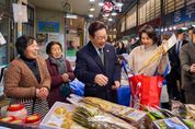 이재명 대통령과 김혜경 여사가 설 명절을 앞두고 충북 충주시에 위치한 무학시장을 찾아 민생 현장을 점검했다. 이번 방문은 설을 앞두고 지역 물가를 살피고 상인과 시민들의 목소리를 직접 듣기 위한 일정으로 마련됐다. 무학시장은 1978년 노점상 정착을 위해 개설된 전통시장이다. 이 대통령과 김 여사는 시장 곳곳을 돌며 상인들에게 “새해 복 많이 받으세요”라고 인사를 건넸고, 상인과 시민들은 박수와 환호로 화답했다. 더덕을 판매한 한 상인은 “덕분에 마수걸이를 한다”며 웃음을 보였고, 다른 상인들도 “힘이 난다”, “고생 많으시다”며 감사 인사를 전했다. 대통령 부부는 황태포, 시금치, 곶감, 깐밤 등 제수용품을 구입하고 백도라지, 마른 멸치, 배추전 등을 시식했다. 결제는 온누리상품권과 현금을 이용했다. 김 여사가 물건을 고르는 동안 이 대통령은 “장사는 잘 되느냐”, “설 대목 분위기는 어떠냐”고 물으며 현장 상황을 살폈다. 정육점 상인은 “차례를 지내는 가정이 줄어 구이용 고기 수요가 많다”고 전했다. 또한 이 대통령은 시장 천장 등 시설을 둘러보며 정비사업에 대한 관심을 보였다. 성남에서 충주로 내려와 떡집을 운영 중인 청년 상인들에게는 “시장을 밝게 만