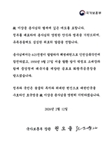권오을 국가보훈부 장관, 故 이상웅 용사 조전 “영원히 기억하겠다”