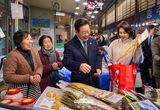 이재명·김혜경 여사, 제수용품 구매…상인과 소통