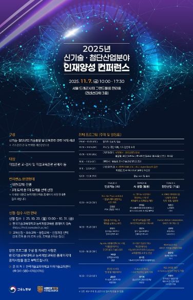 7일 서울드래곤시티 한라홀에서 열린 **‘2025년 신기술·첨단산업분야 인재양성 콘퍼런스’**에는 직업훈련교·강사 및 직업교육 관계자 350여 명이 참석해 생성형 인공지능(AI) 등 기술혁신이 직업교육훈련에 미칠 변화와 대응 전략을 논의했다.