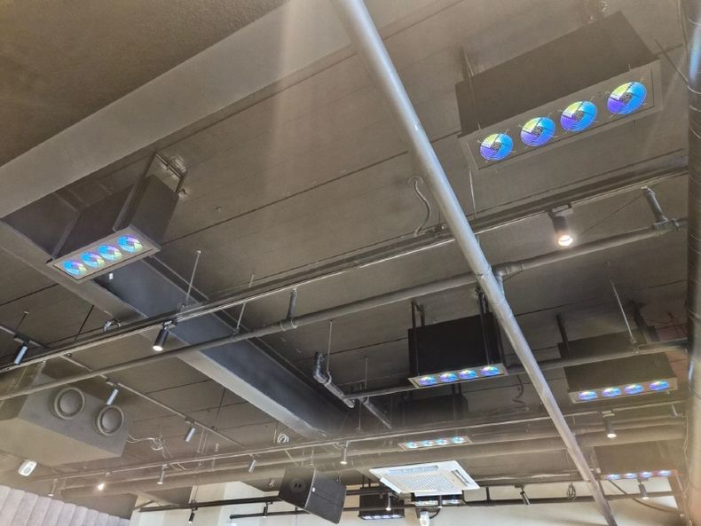 가장 눈길을 끄는 것은 국내 최초 KC 인증을 받은 비트코인 채굴용 마이닝컴퓨터 25대가 천장에 설치되어 있다는 점이다.