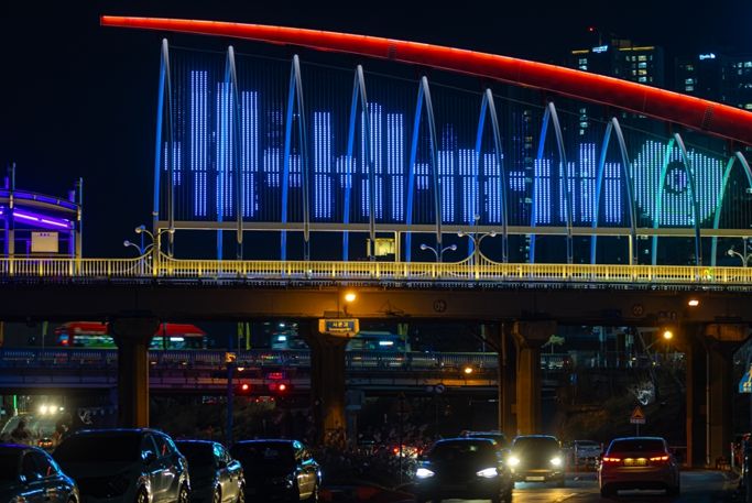 서문교는 대형 미디어파사드로 화려한 빛의 퍼포먼스를 선보였다.