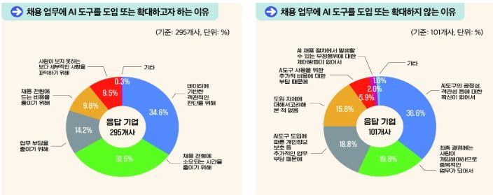 향후 채용 과정에 AI를 도입하거나 확대하겠다고 응답한 기업은 **74.5%(295개)**에 달했다.