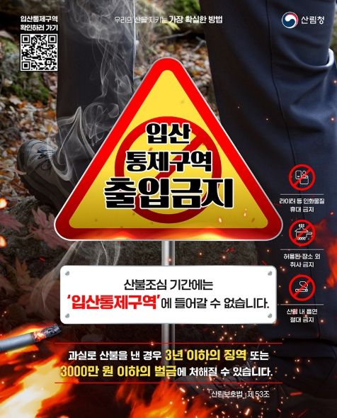 산불 위험이 높아지는 시기를 맞아, 산림 보호를 위한 입산 통제구역 출입 금지 규정이 다시 한번 강조되고 있다. 산불조심기간에는 지정된 구역에 대한 출입이 법적으로 제한되며, 이를 위반할 경우 강한 처벌을 받을 수 있다.