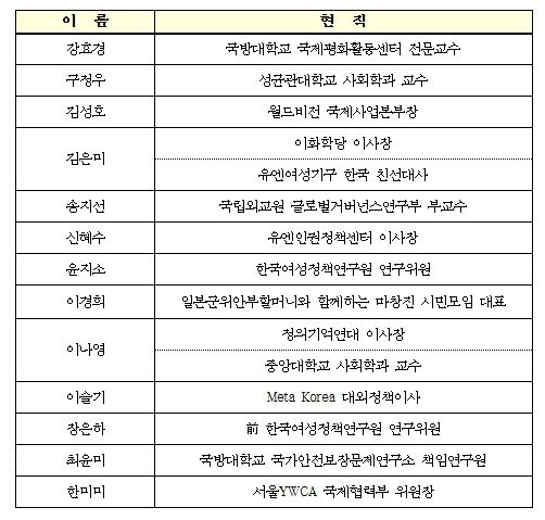 ■ 민간 전문가 참여 확대…‘여성·평화·안보’ 논의 심화
