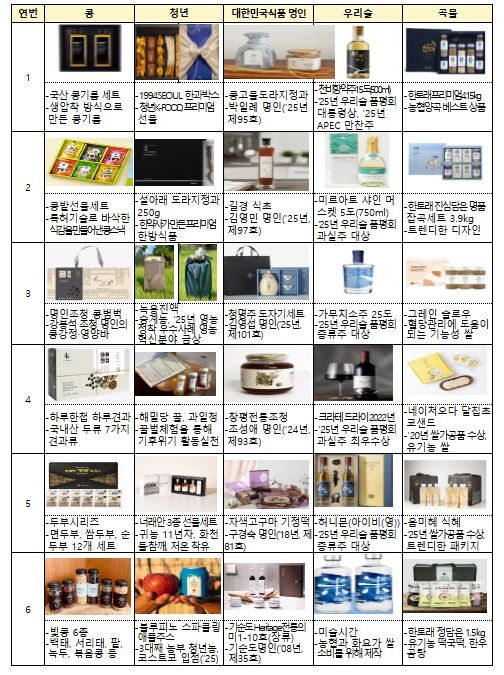 특히 최근 판로 확대가 필요한 콩 가공제품을 적극 포함해 농가와의 상생을 도모했으며, 청년 농업인이 생산한 제품을 선보여 지속가능하고 미래지향적인 농업·농촌의 비전을 담아냈다. 여기에 대한민국 식품명인의 노하우가 깃든 제품과 품평회를 통해 품질을 인정받은 우리술을 엄선해 명절 선물로서의 품격과 신뢰도를 한층 끌어올렸다.