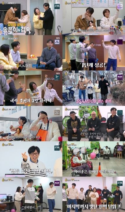 두 번째 틈 주인은 서울시 공유 자전거 ‘따릉이’ 정비사 팀. ‘작업 의자 달리기’ 릴레이 게임에서 네 사람은 환상의 팀워크로 3단계까지 극적 성공을 거뒀다. 강강술래로 기쁨을 나누며 “30년 호흡이 만든 결과”라는 뿌듯함도 전했다.