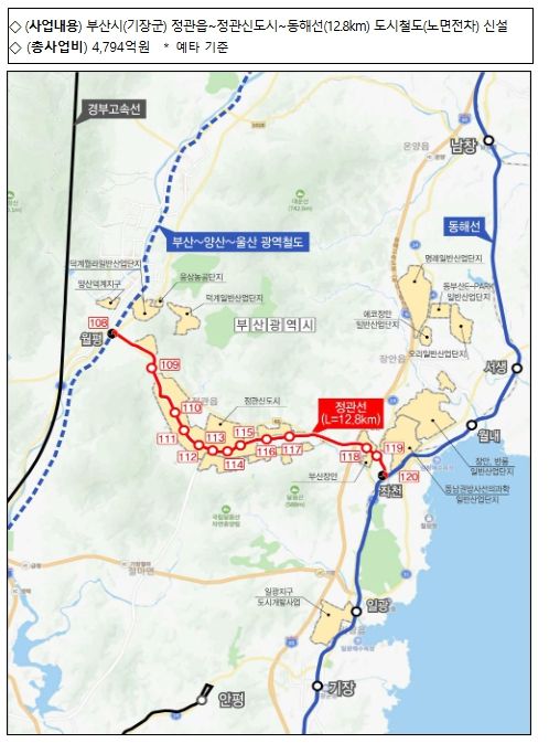 정관신도시 교통 수요 분산과 부산 도심 연결 강화를 목표로 추진됐다.