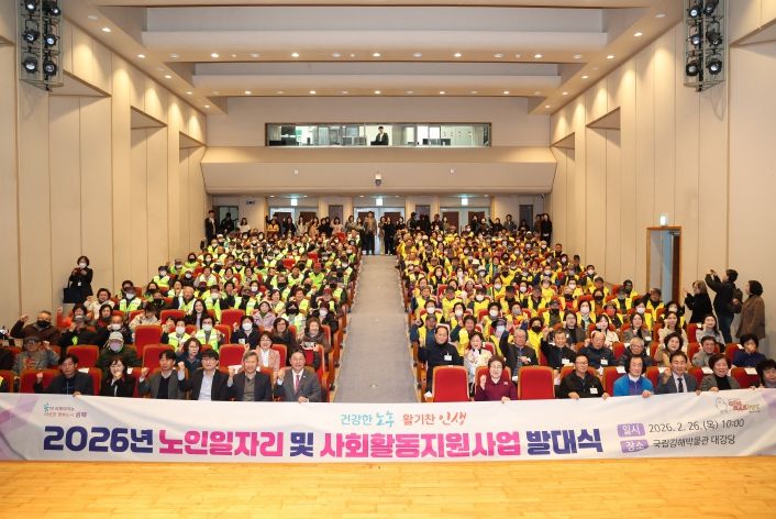 김해시는 26일 국립김해박물관 대강당에서 노인일자리 참여자 등 230여 명이 참석한 가운데 ‘2026년 노인일자리사업 발대식’을 개최했다.