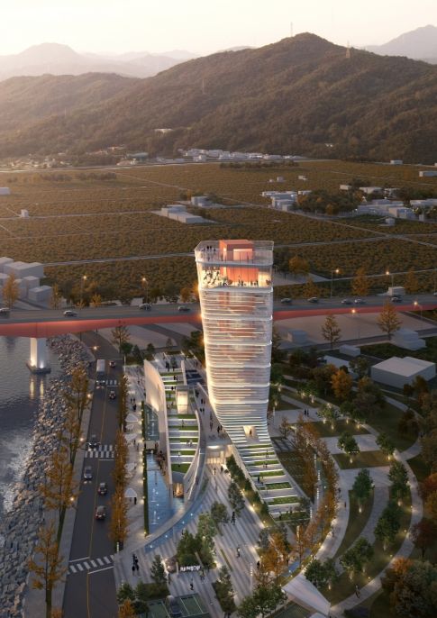 사업의 핵심 시설로는 사천만 해안 경관을 한눈에 조망할 수 있는 높이 65m 규모의 전망타워가 조성된다.