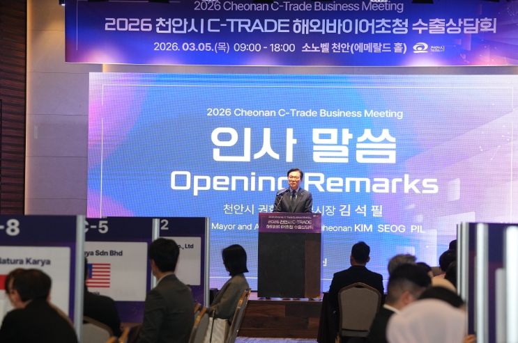 비즈데일리 장대성 기자 | 천안시가 지역 중소기업의 글로벌 판로 개척을 위해 추진한 ‘2026 천안시 C-TRADE 해외바이어 초청 수출상담회’가 가시적인 성과를 거두며 성황리에 마무리됐다.