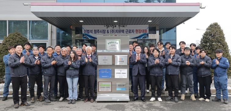 비즈데일리 장대성 기자 | 청주시는 6일 유망중소기업으로 선정된 ㈜지우텍을 방문해 현장 근로자들의 노고를 격려하고 의견을 청취하는 ‘기업 현장 소통의 날’ 행사를 개최했다.