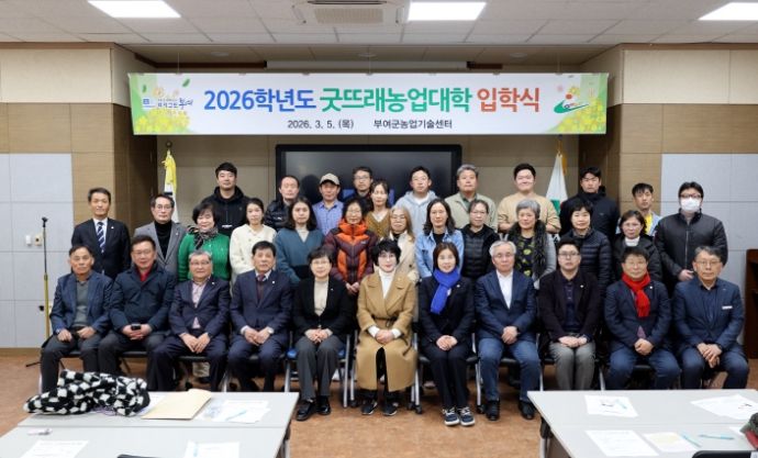 비즈데일리 장대성 기자 | 부여군은 농업기술센터 굿뜨래홍보교육관에서 미래농업을 이끌 정예 양성을 위한 ‘2026학년도 굿뜨래농업대학’ 입학식을 개최했다고 9일 밝혔다.